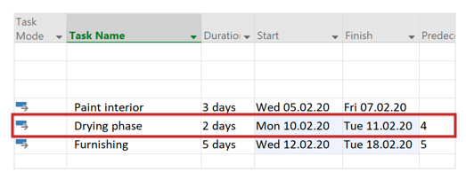 Take a look at the screenshot below. Now our drying phase task is scheduled for Saturday / Sunday: